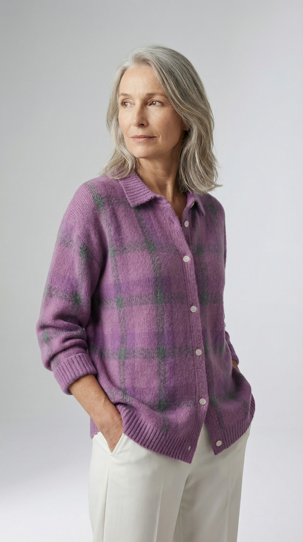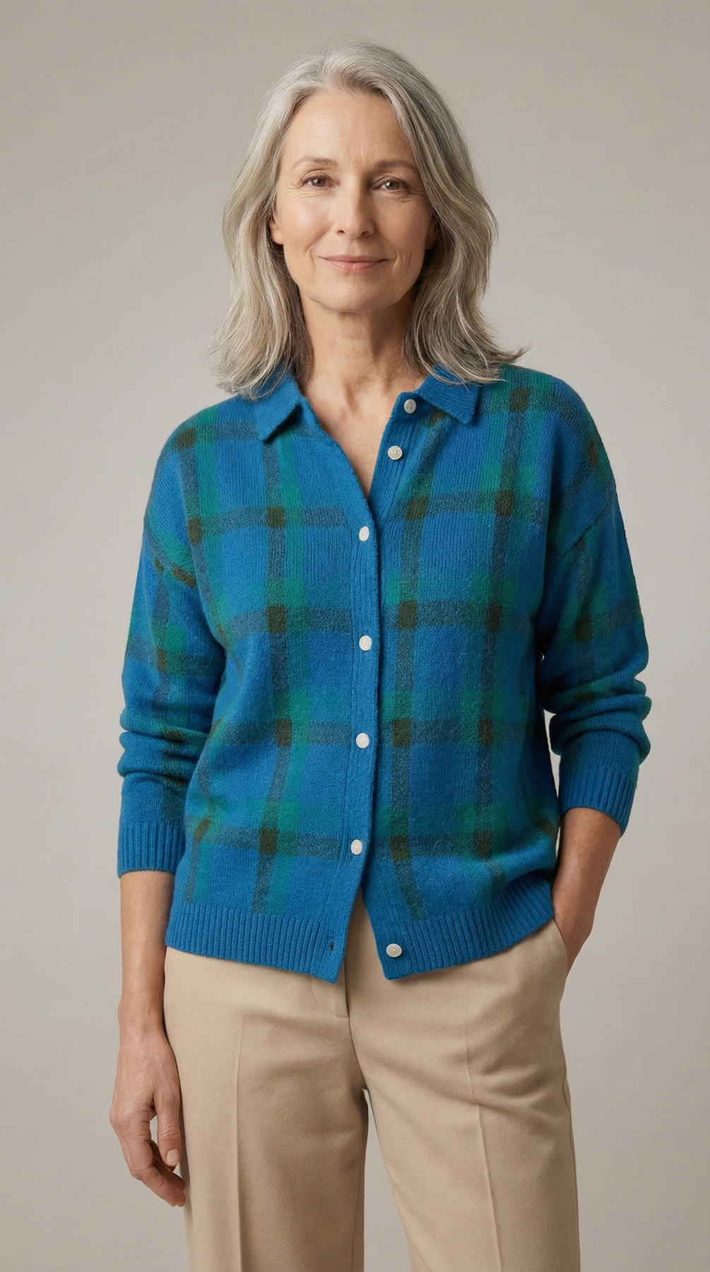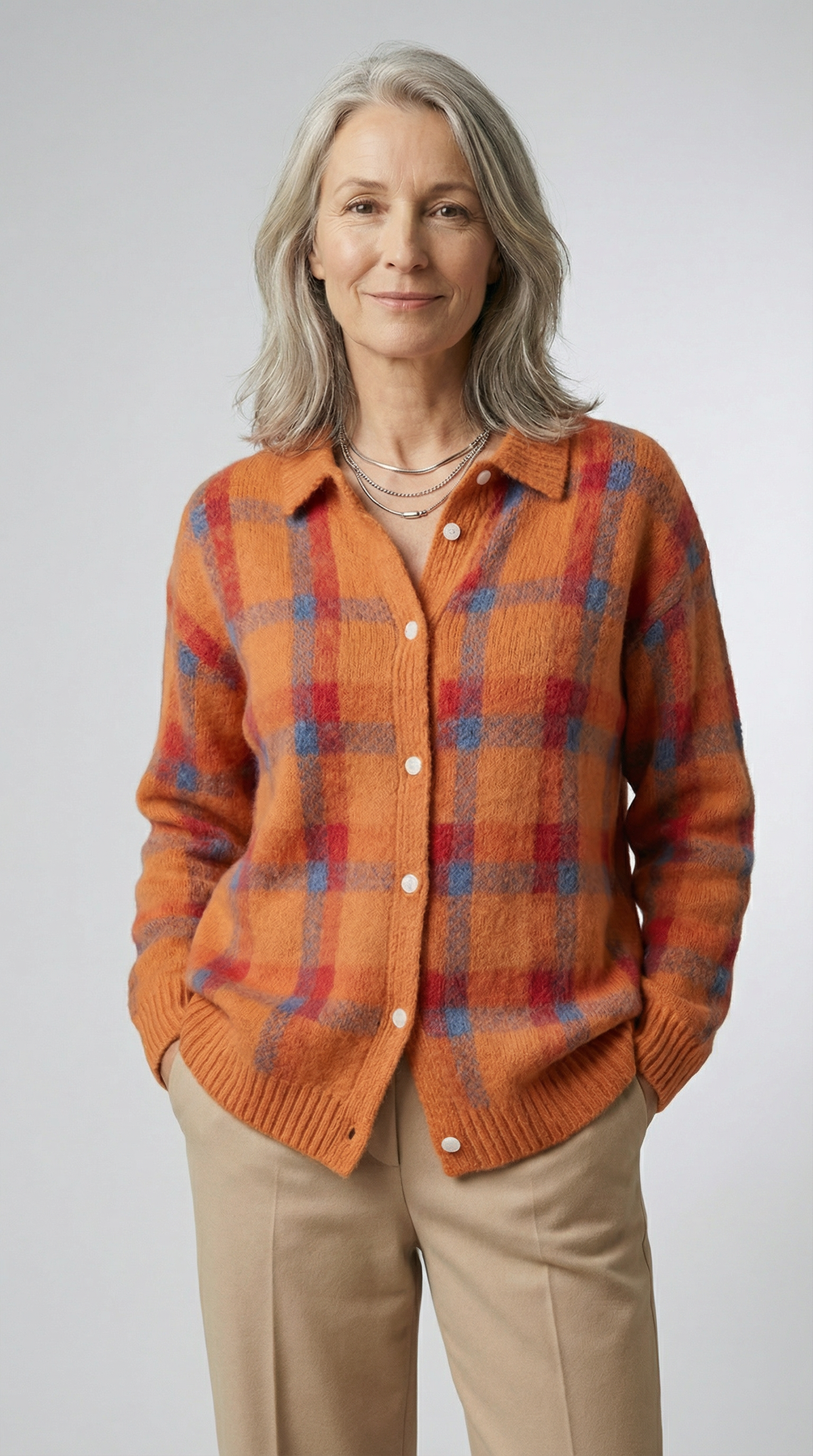 Le cardigan Anna™ associe un motif à carreaux intemporel à une maille douce et chaleureuse, créant une pièce à la fois confortable et élégante. Son allure subtilement rétro apporte du caractère à vos tenues tout en conservant une silhouette moderne et facile à porter.