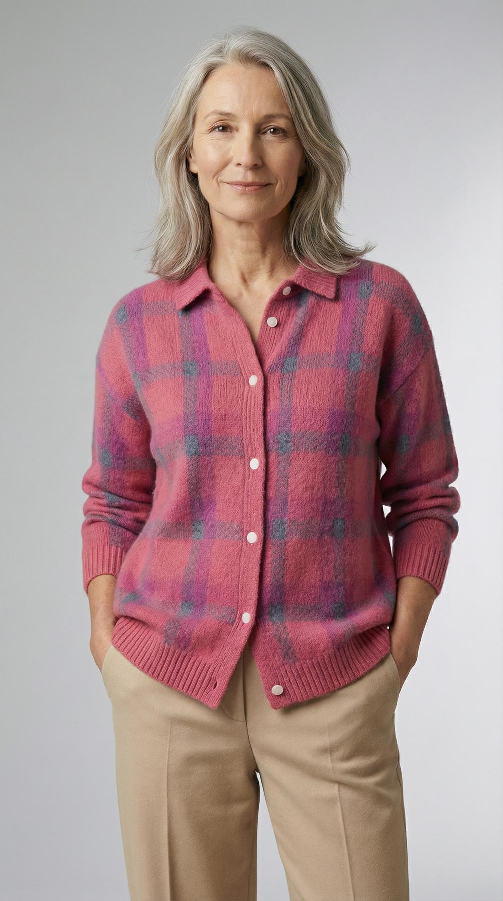 Charme rétro et douceur enveloppante – Anna™ | Cardigan à Carreaux