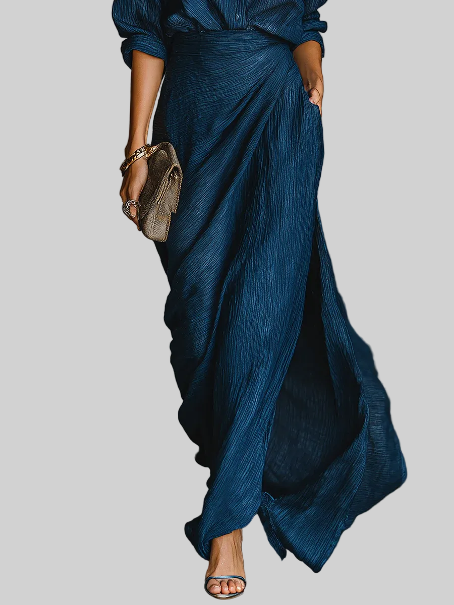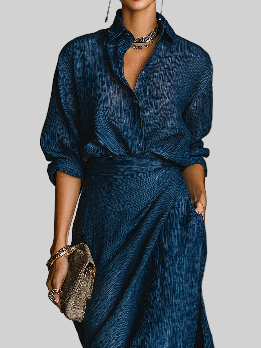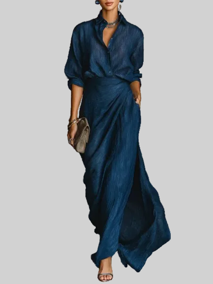 Aurélie est l’ensemble élégant composé d’une chemise et d’une jupe longue dont vous avez besoin dans votre garde-robe.