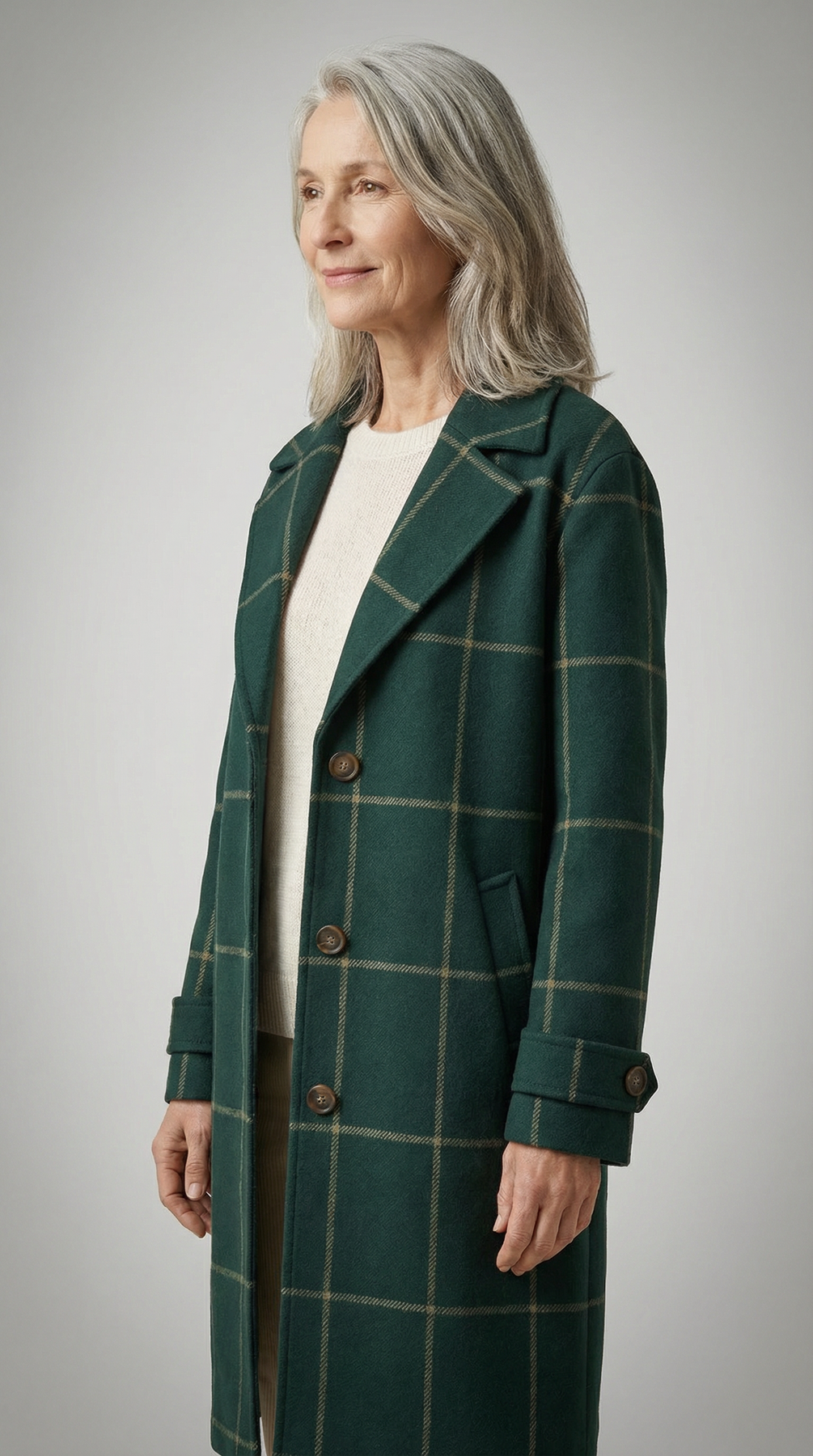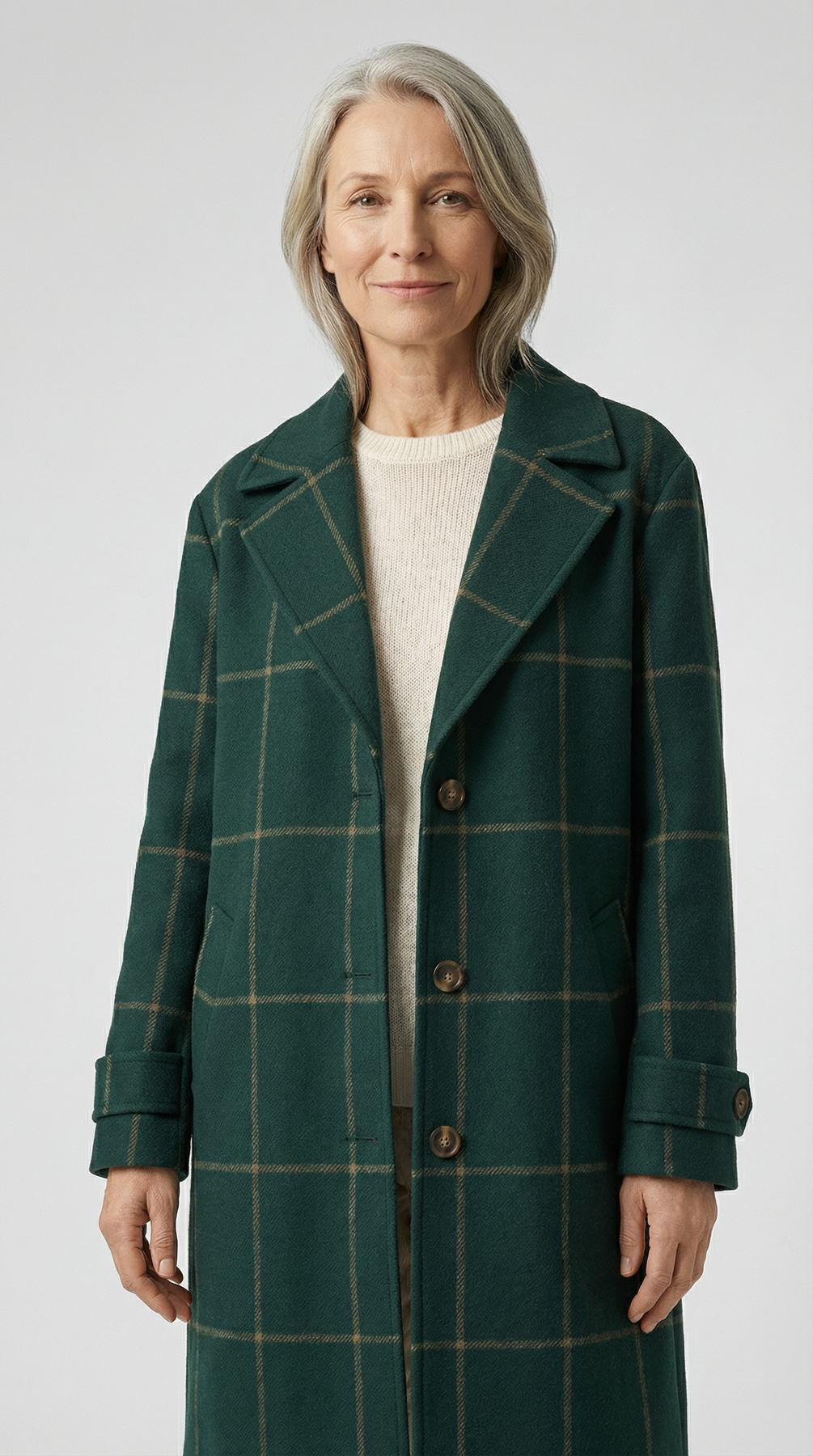 Sortir lors des matinées froides tout en se sentant immédiatement élégante, confiante et parfaitement enveloppée : c’est cette sensation qui inspire le manteau Valeria. Sa ligne épurée, sa coupe sartoriale et son motif à carreaux intemporel créent une allure distinguée, naturellement raffinée.